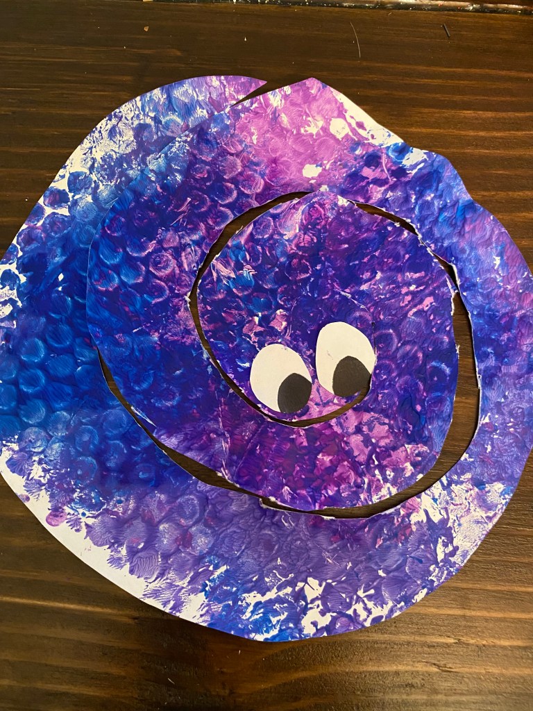 Students will be able to create snakes out of paper plates. They will be using bubble wrap to create a print on a paper plate. They will be using different media to print and will also work on their fine motor skills when it comes to cutting out the snake.